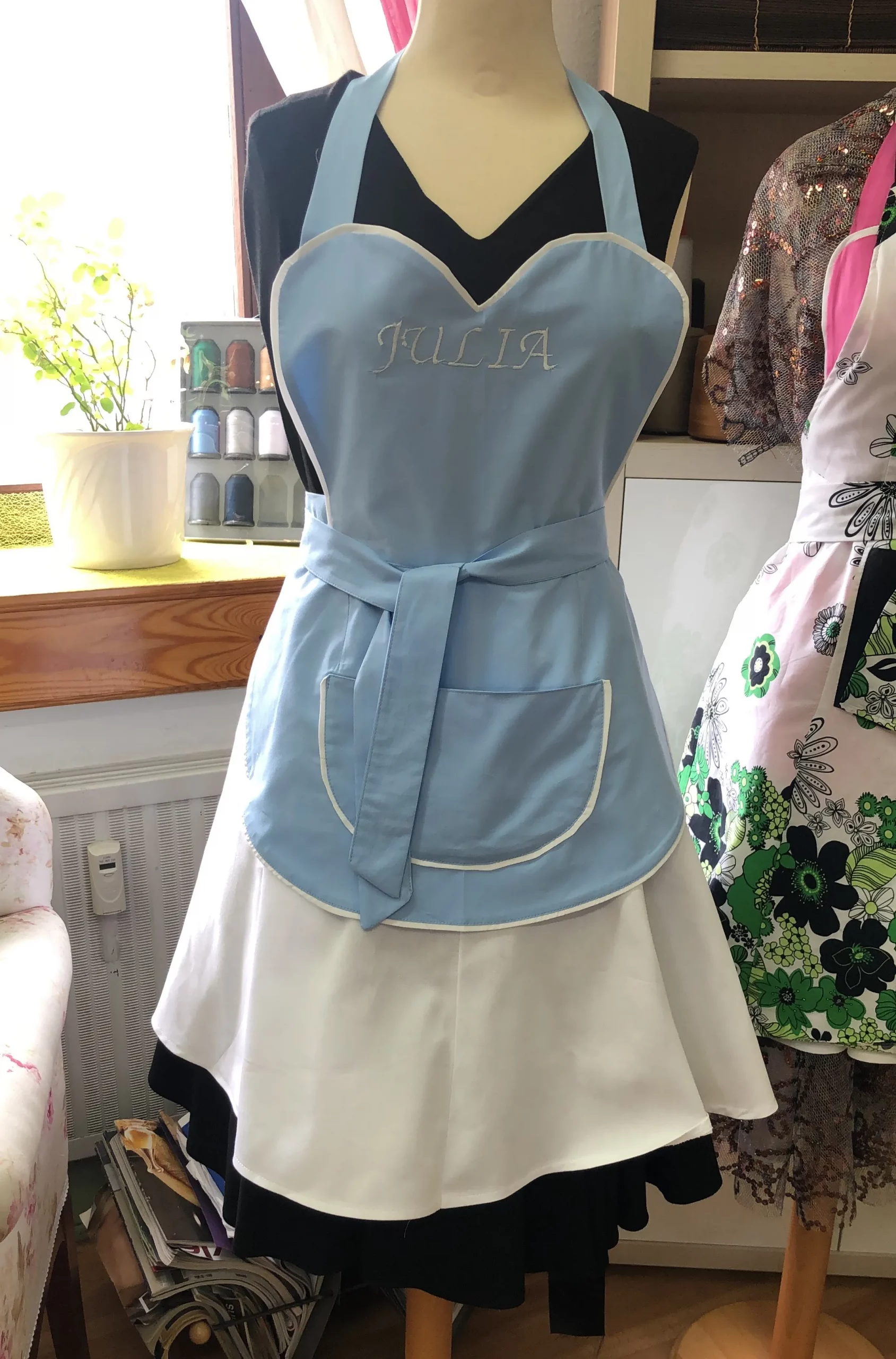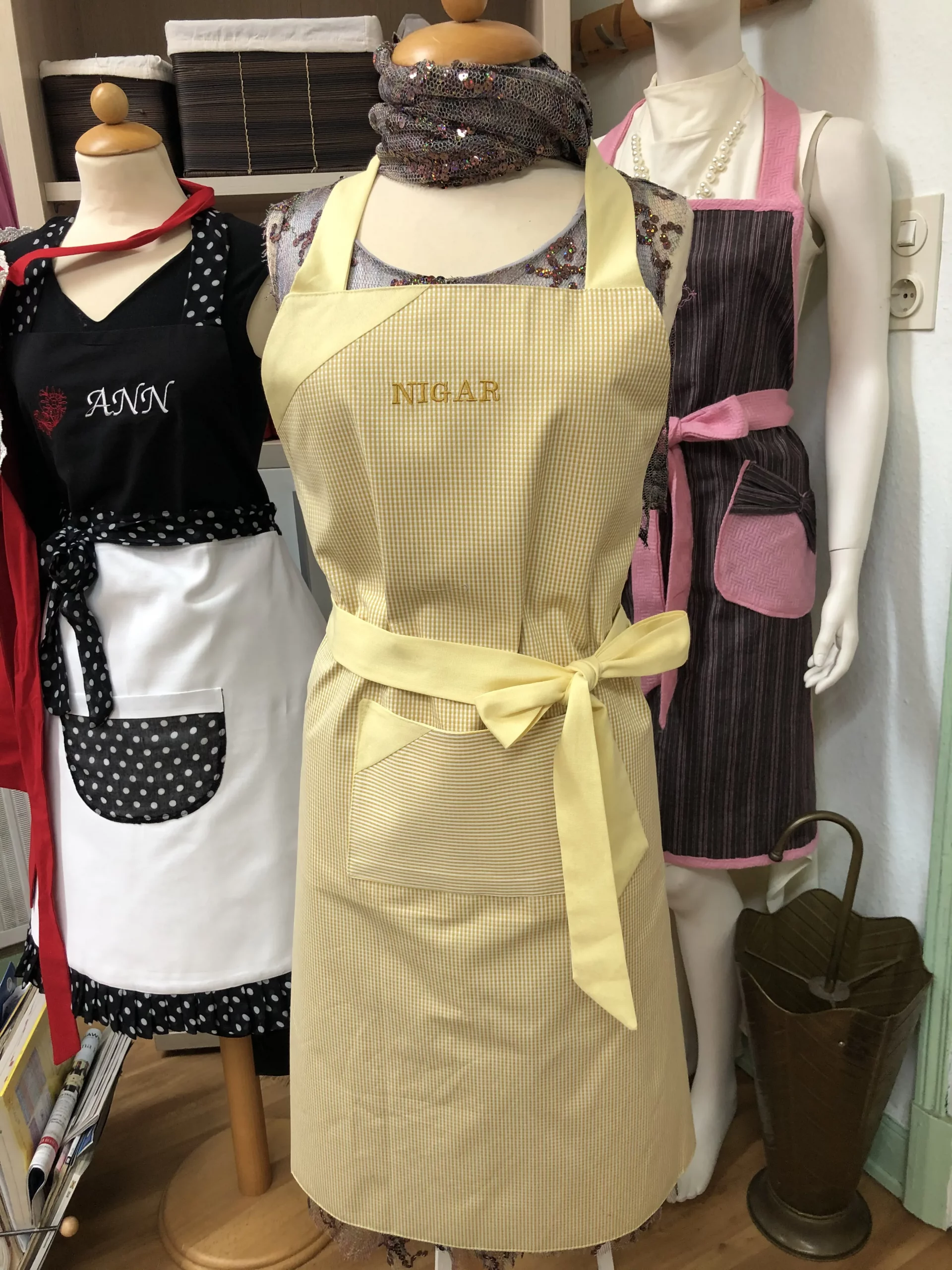 Wählen Sie aus einer breiten Palette von hochwertigen Stoffen und Farben und verleihen Sie Ihrer Schürze mit Dekoelementen und Namensbestickung eine persönliche Note. Die Kochschürzen eignen sich perfekt für den eigenen Gebrauch oder als besonderes Geschenk für Kochbegeisterte.