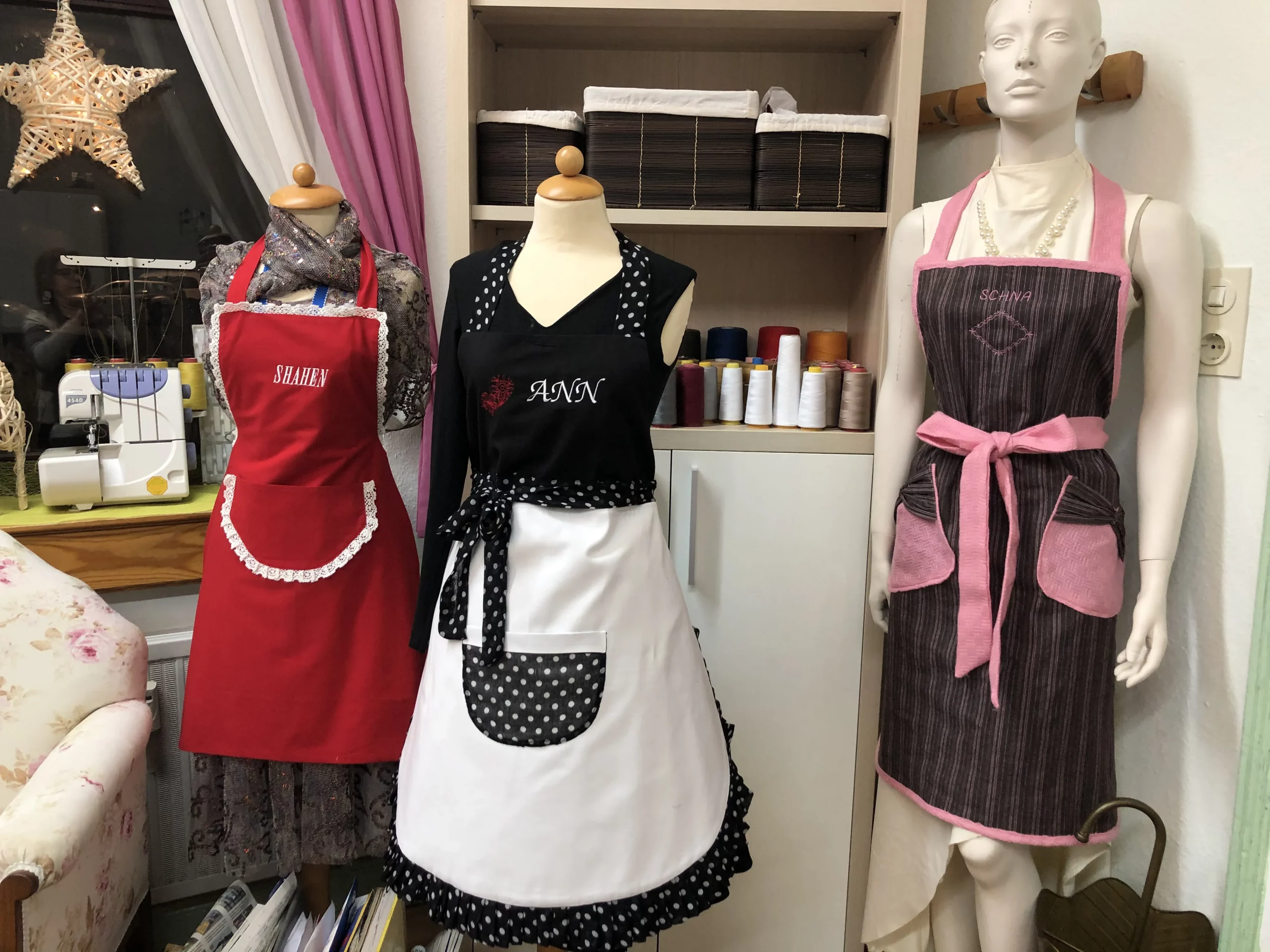 Kunstvolle Gestaltung maßgeschneiderter Kochschürzen, die sowohl funktional als auch ästhetisch ansprechend sind.